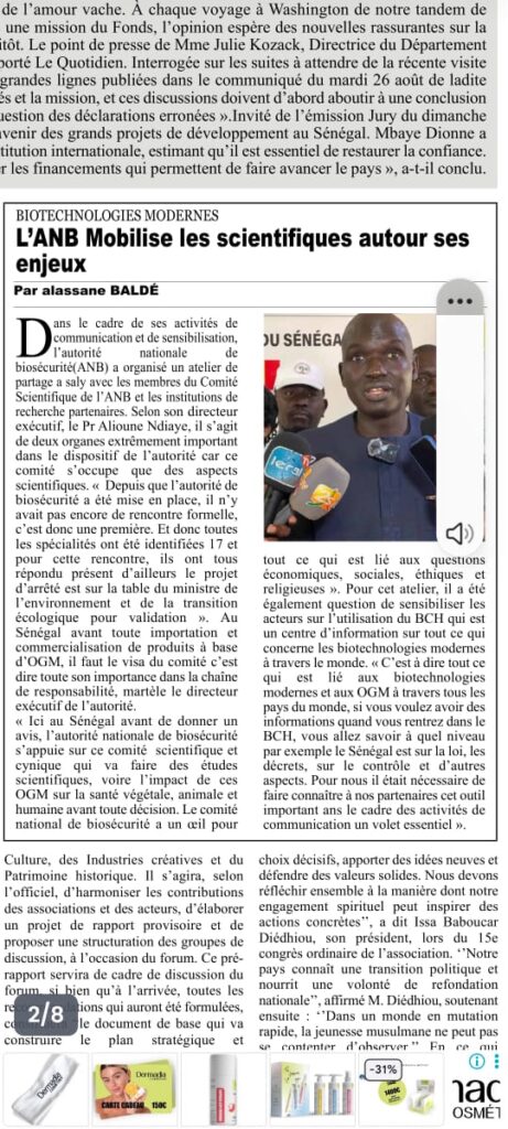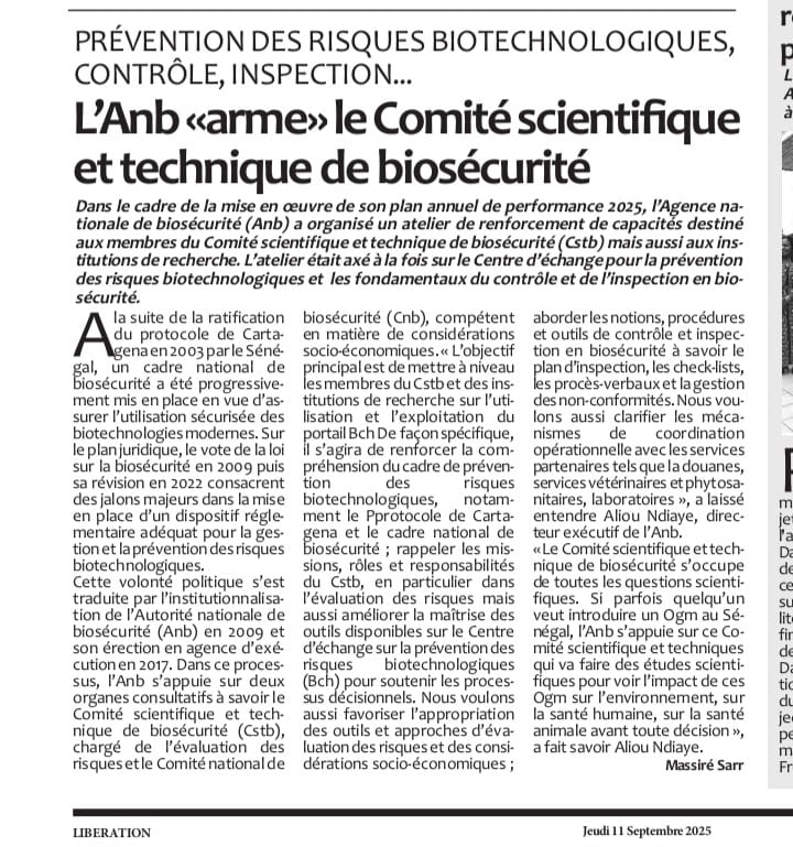 #Biosécurité#Sénégal#biotechnology#mete#OGM#BCH#CSTB#cartagenaprotocole#cbd#biodiversité