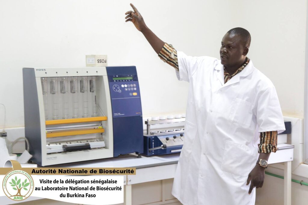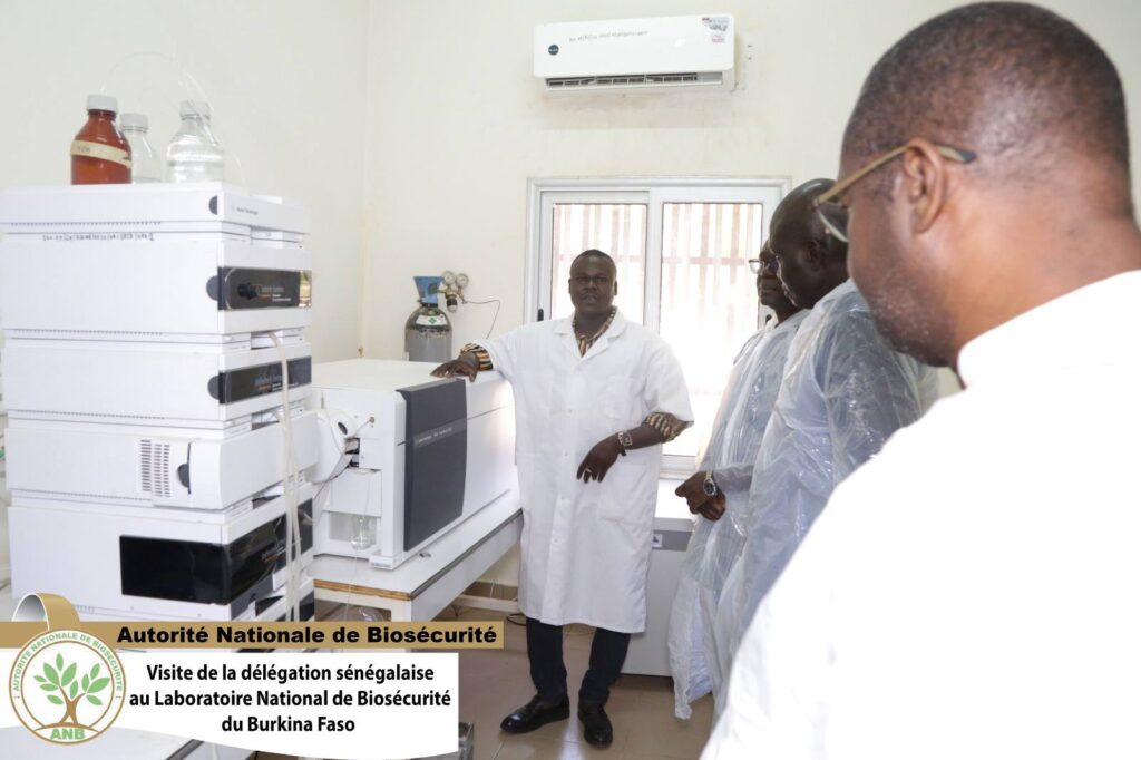 Une étape clé de cette mission a été la visite du Laboratoire national de Biosécurité du Burkina Faso, le 11 novembre 2025. Inauguré en 2019 par le Pr Alkassoum Maïga, alors Ministre de l’Enseignement supérieur, de la Recherche scientifique et de l’innovation, ce laboratoire joue un rôle central dans le contrôle, la détection et l’identification des Organismes Génétiquement Modifiés (OGM). La délégation sénégalaise a ainsi pu constater les progrès réalisés dans ce domaine et échanger sur les défis techniques et organisationnels liés à la biosécurité.