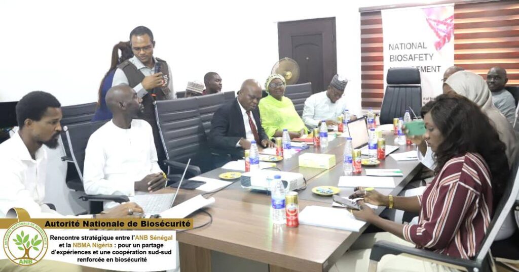 La mission de l’ANB Sénégal a continué avec une visite au Nigéria, où la délégation a été reçue le 13 novembre 2025 par l’Agence Nationale de Gestion de la Biosécurité (NBMA), à son siège à Abuja. Lors de cette rencontre, les deux parties ont échangé sur le cadre national de biosécurité du Nigéria, un modèle qui a fait ses preuves en matière de régulation et de gestion des biotechnologies.
