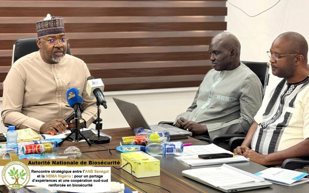 Dans le cadre de son engagement en faveur du renforcement de la coopération sous-régionale et de la valorisation des biotechnologies modernes, une délégation de l’Autorité Nationale de Biosécurité du Sénégal (ANB), conduite par le Professeur Alioune Ndiaye, Directeur exécutif de l’ANB, et le Colonel Lamine KANE, Secrétaire permanent, a effectué une mission au Burkina Faso et au Nigéria. Cette mission, qui s’inscrit dans une démarche de benchmarking, a pour objectif de renforcer les capacités en biosécurité et de favoriser le partage d’expériences et de bonnes pratiques entre les pays de la région.